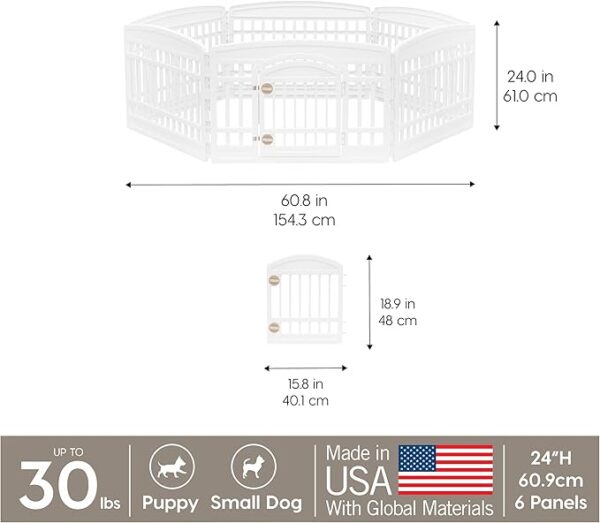 IRIS USA 24″ 6-Panel Pet Dog Puppy Playpen with Door, For Puppy Small Dogs Keep Pets Secure Easy Assemble Easy Storing Customizable Non-Skid Rubber Feet, White